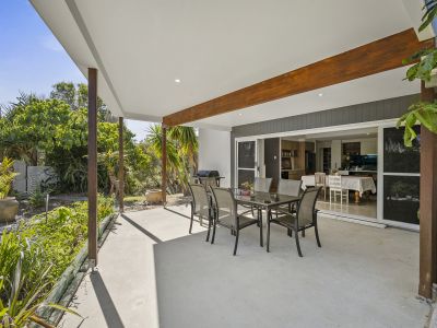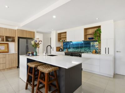 Set on a sprawling 1,000m2 corner block at the entrance of the prestigious 'Friday Island,' this architecturally designed home perfectly balances luxury (some existing, some potential), natural light, and the relaxed coastal lifestyle. With only one neighbouring property to the south, this home enjoys unmatched privacy, ocean breezes, and a serene north-facing orientation.