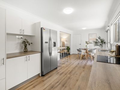 The kitchen and dining zone is open and inviting, flowing seamlessly through sliding glass doors to a generous alfresco patio - the perfect place to entertain guests or enjoy a quiet evening outdoors. Each of the three bedrooms includes built-in robes and is serviced by a centrally located bathroom, ideal for family functionality.