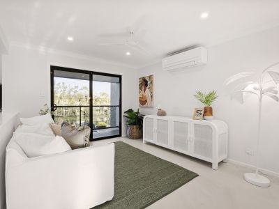 Across the other side (and also thoughtfully divided) is a second living room - a calm and serene space perfectly suited to casual TV evenings or cosy family movie nights. It offers plenty of room for lounging and relaxing, with peaceful water views.