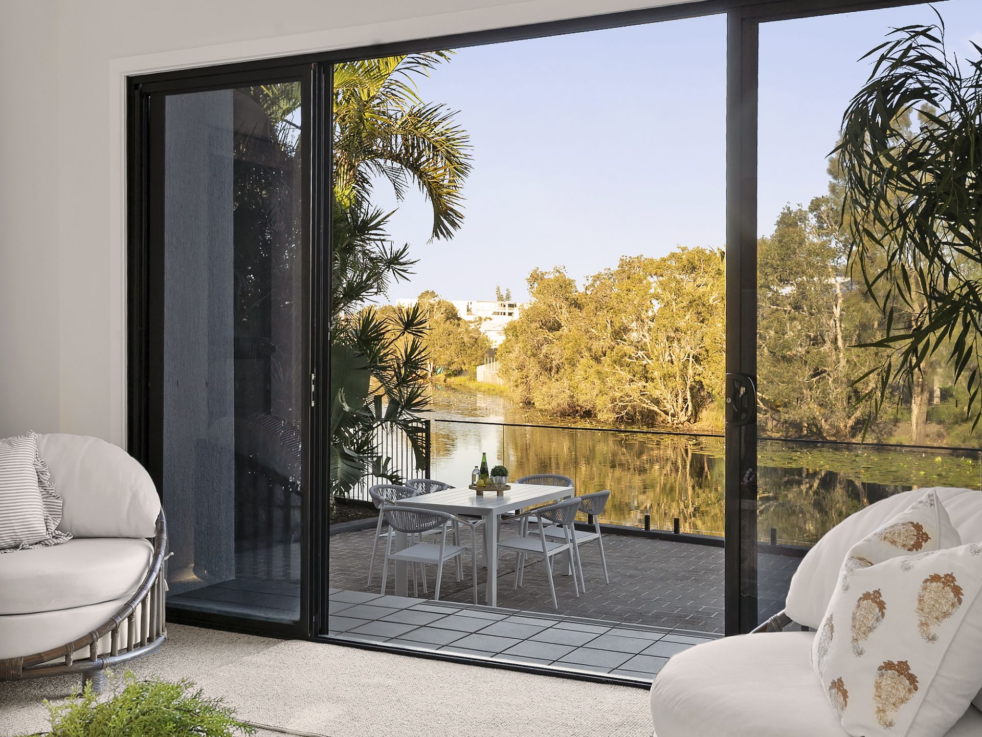 Tucked off the end of the hallway is the generous master suite - a relaxing, private haven featuring a walk-in robe and stunning ensuite. Here you can enjoy slow mornings taking in views of the canal from bed, or basking in the morning sunshine while sipping coffee on the adjoining balcony.