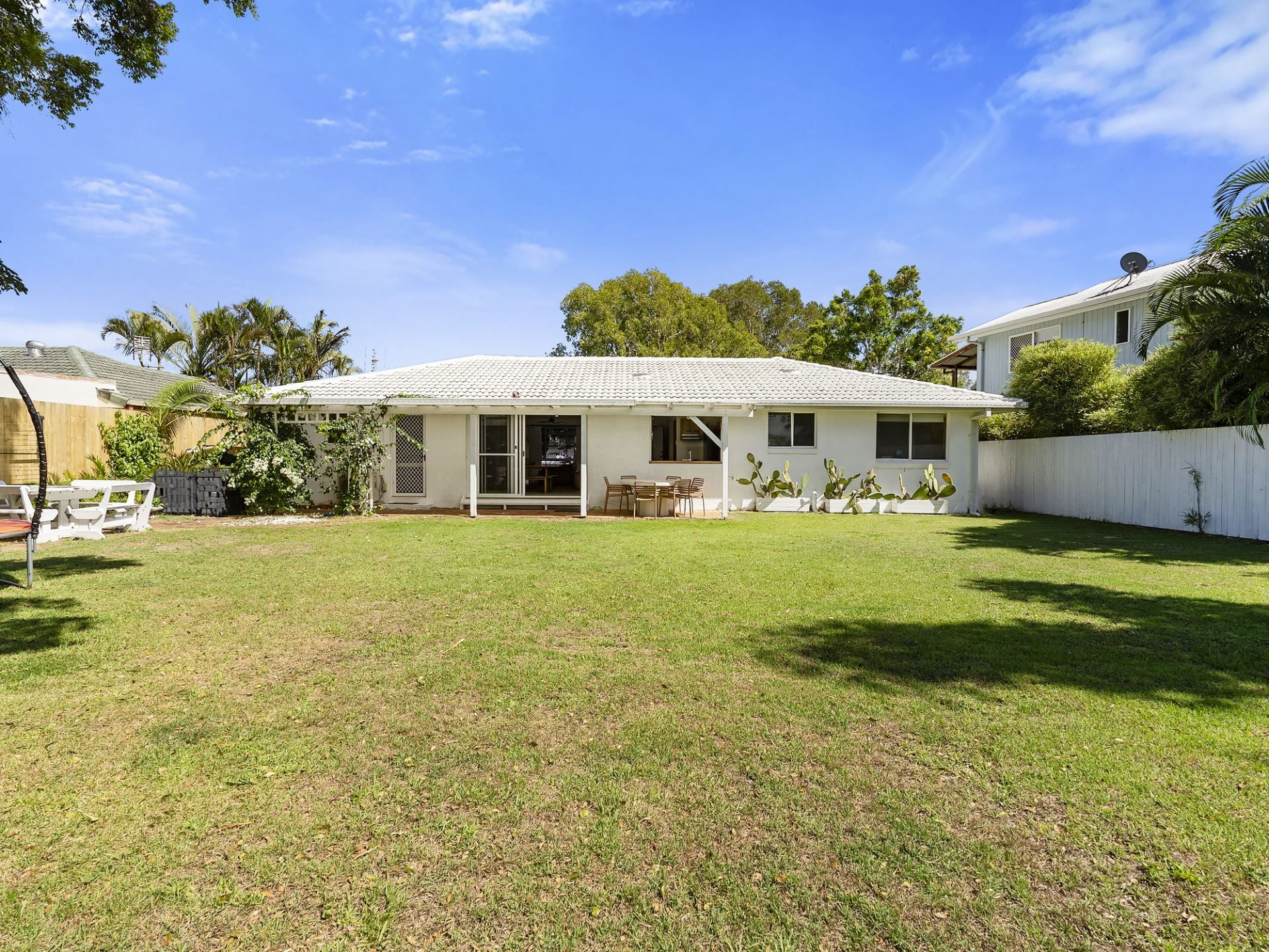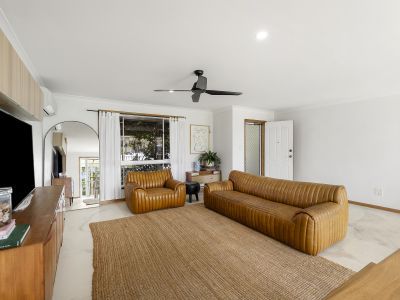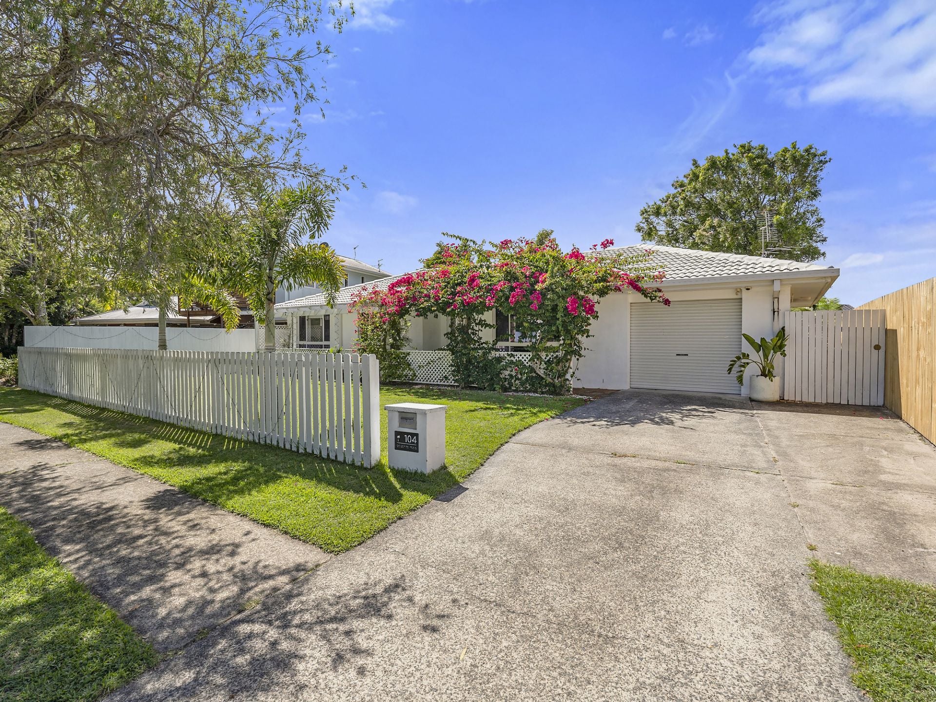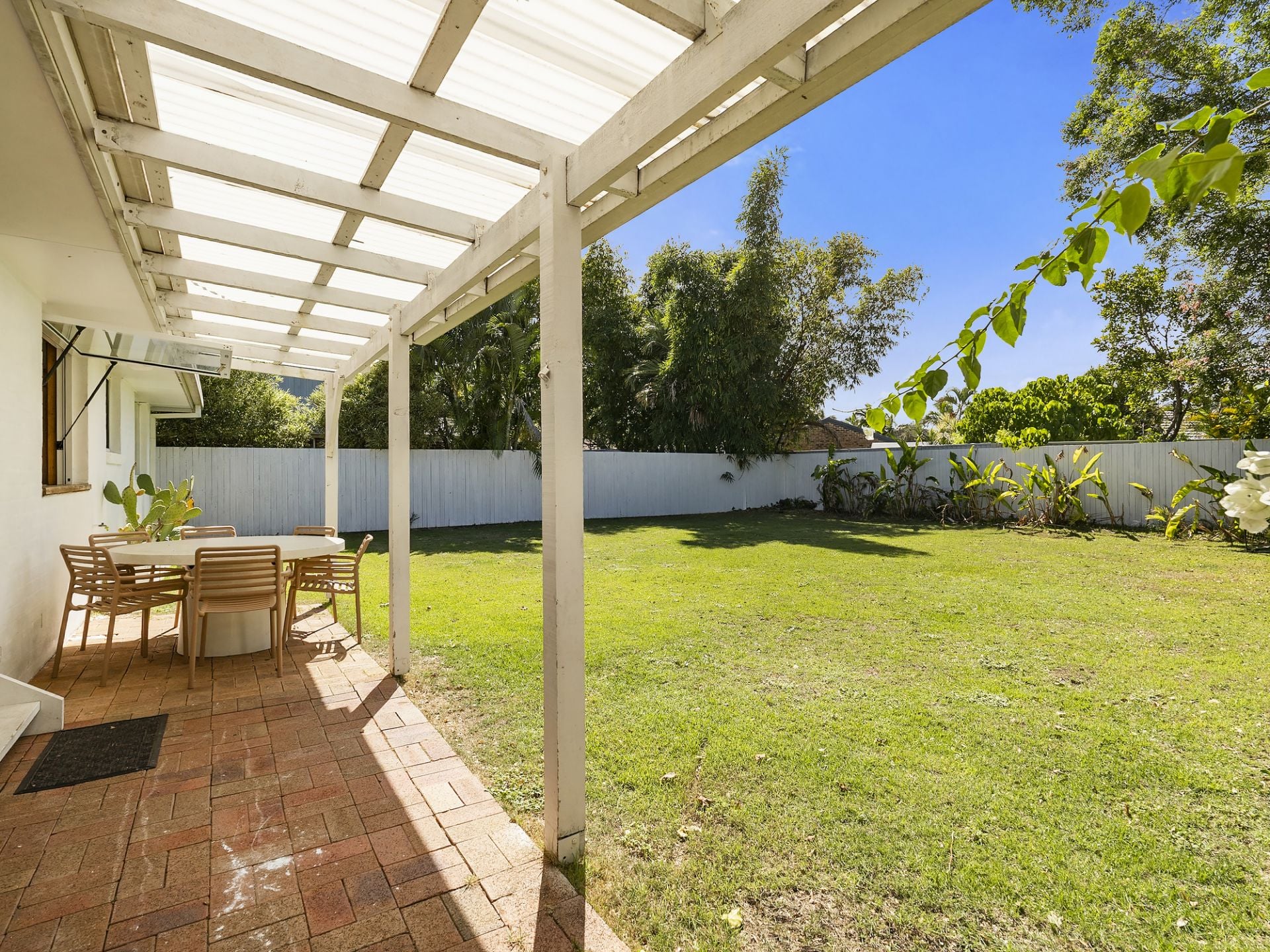Set behind a timber pergola wrapped in bougainvillea, this white-painted brick beach house has long been a quiet standout on Cabarita Road. The kind of place people notice… and instinctively ease off the accelerator as they pass.