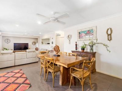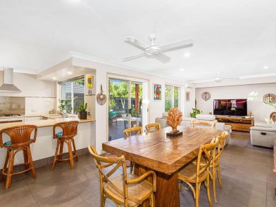 This charming home in Cabarita Beach is a must see! Centrally located on a desired street, only a short stroll to the beach, shops and school. This rare NE facing, pie shaped (679m2) block offers 28 meters of frontage -providing ample space for your boat, caravan or toys. Modifications have been made to the original home to maximize both indoor and outdoor living spaces and magnify the homes tranquility.
