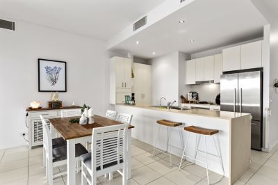 The open plan kitchen and living area connect seamlessly onto the oversized balcony with the master bedroom sharing the same private outlook and access to the balcony whilst capturing natural light and the fresh sea breeze.