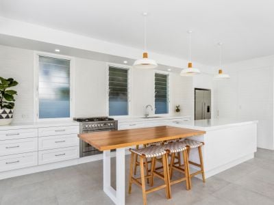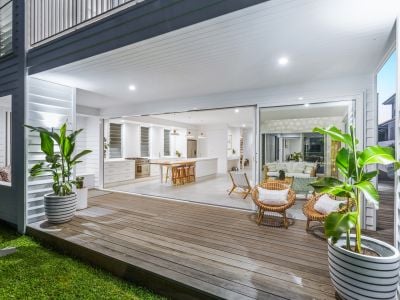 Light, cross-ventilated air, vaulted ceilings, custom joinery, large timber doors and feature walls all combine in a beachy and effortless way. This home is generous, yet not wasteful of space.