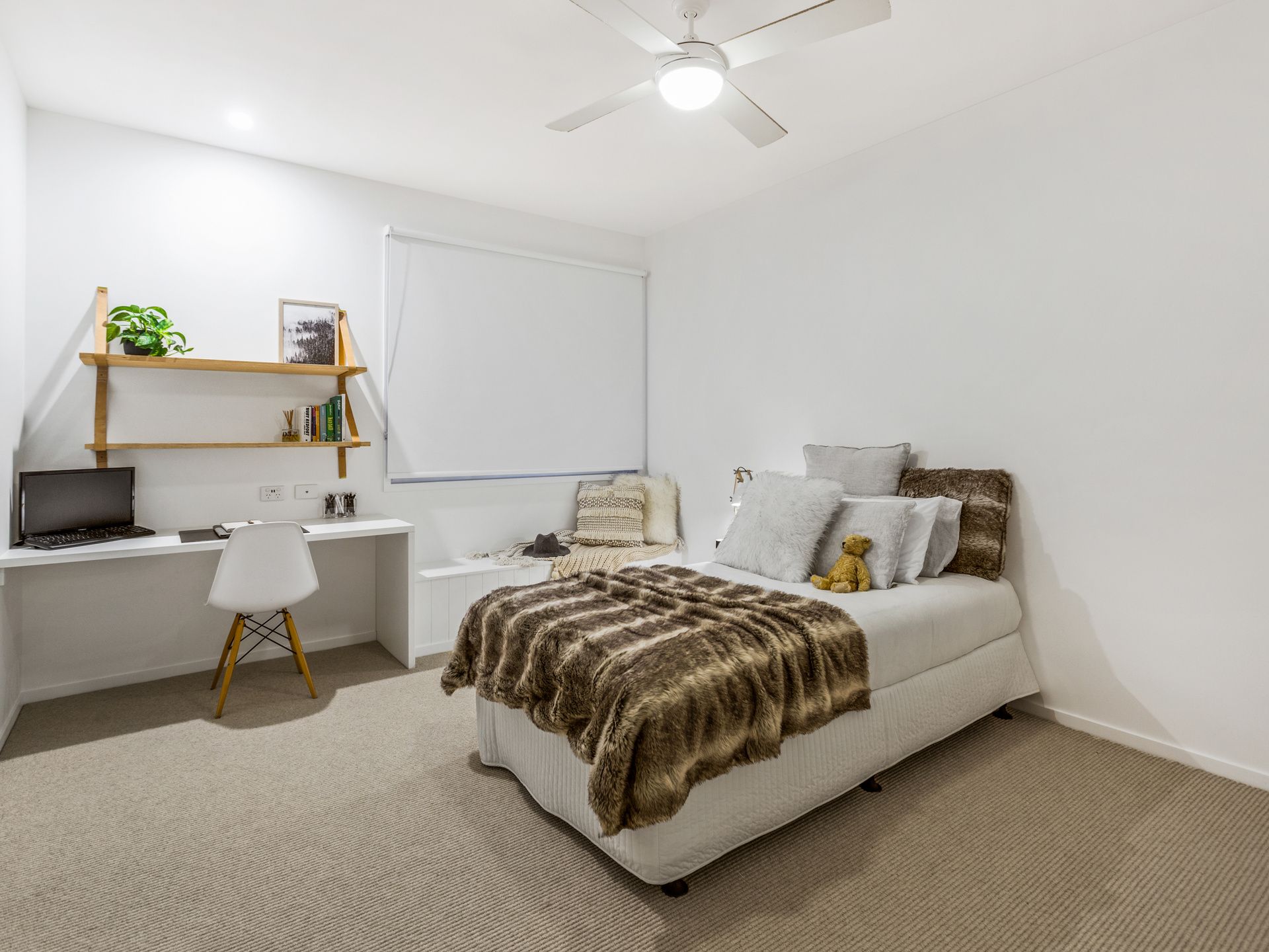 Upstairs as the plan shows, is the sleeping zone with a master bedroom, en suite and large walk in robe to dream about. The secondary bedrooms are also private and share a third bathroom with equally impressive taste and finish. The ceilings impress throughout this beach home.