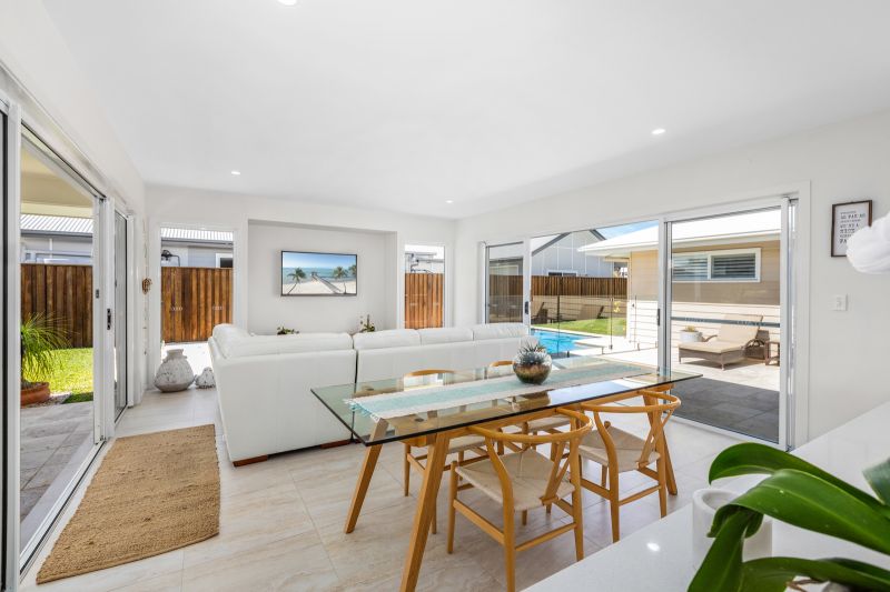A generous open-plan living and dining area, gourmet kitchen with stone bench-tops and walk-in pantry create a perfect layout for entertaining.The two fabulous outdoor entertaining areas connect the indoor and outdoor living spaces, and also provide different destinations to suit coastal weather patterns. This home has been well thought out to maximise your outdoor beach lifestyle!