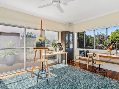 Mention needs to be made of the flexibility of this well designed floor-plan! With the fifth, large bedroom downstairs, this room could also function as the ultimate home office with a side, separate entrance. The five bedrooms and the home in general is well proportioned and the master is an absolute dream. It is spacious, light and has a fabulous covered deck with views towards the hills in the distance. Sunsets from up here are spectacular!