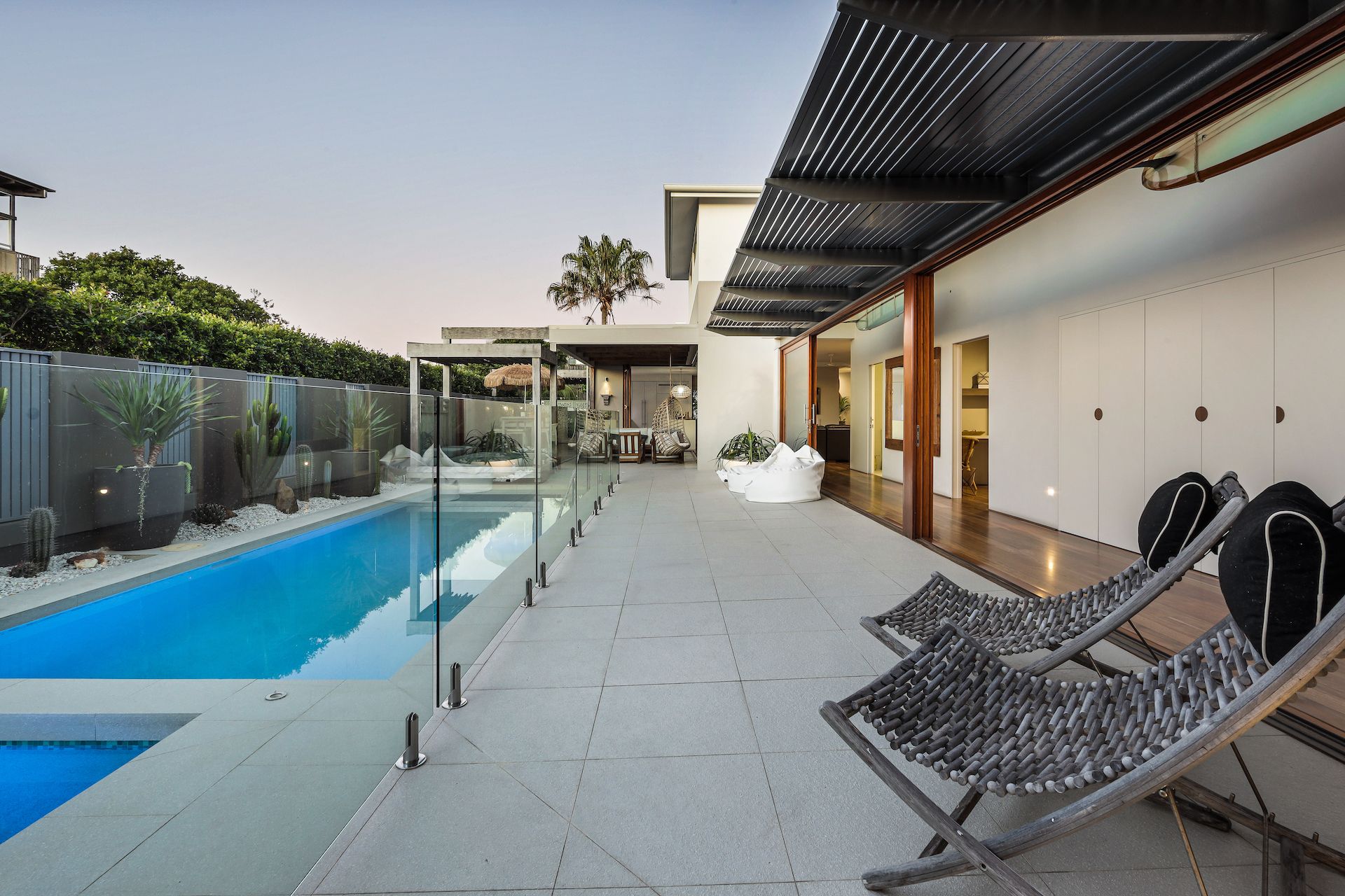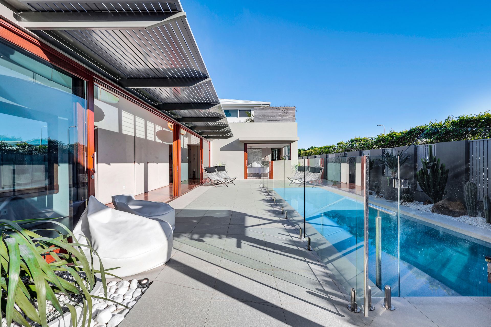 - Magnesium pool (7m x 3m) heated spa, and plush poolside daybed north-east facing outdoors, cabana with custom concrete bar and built-in BBQ