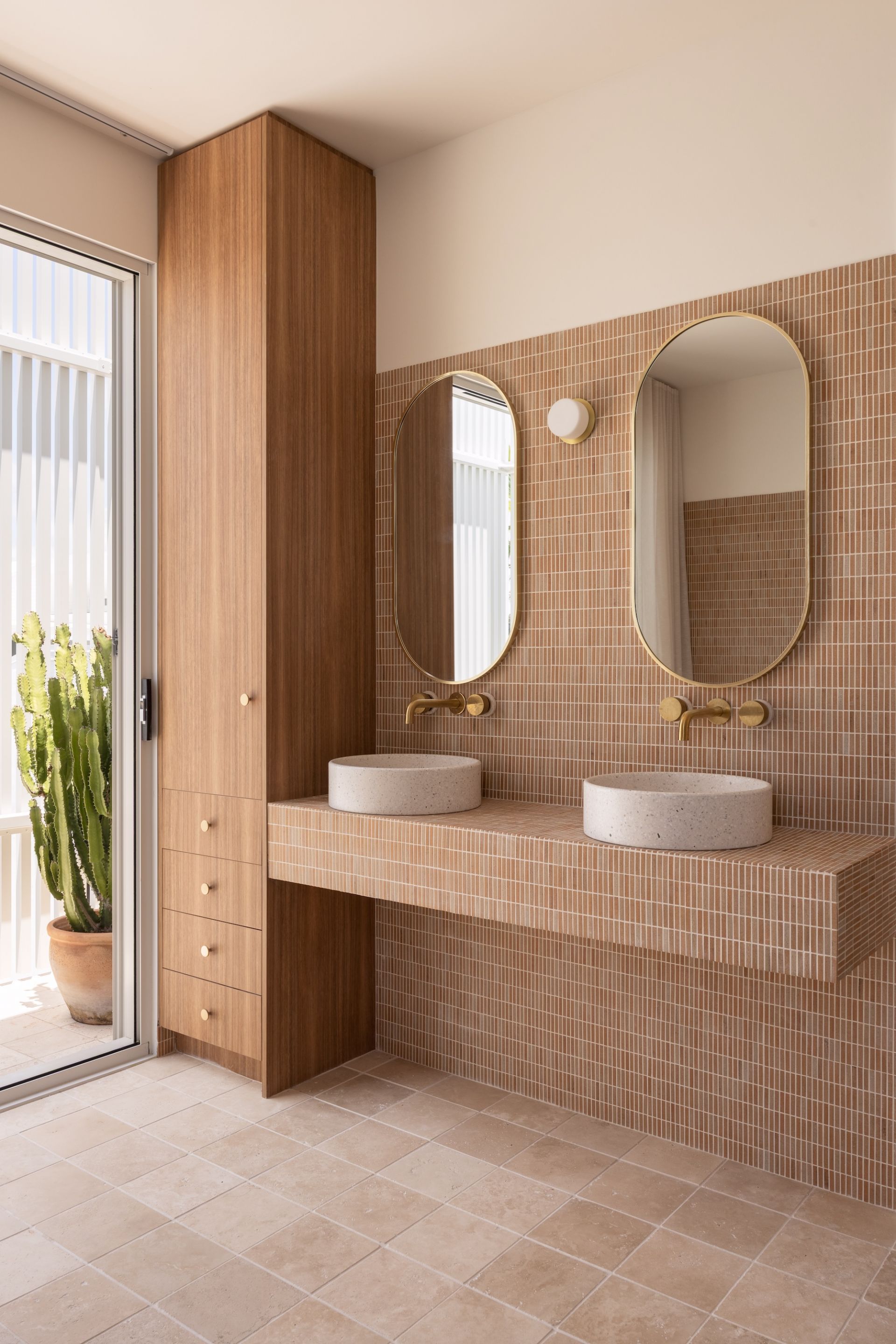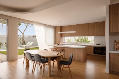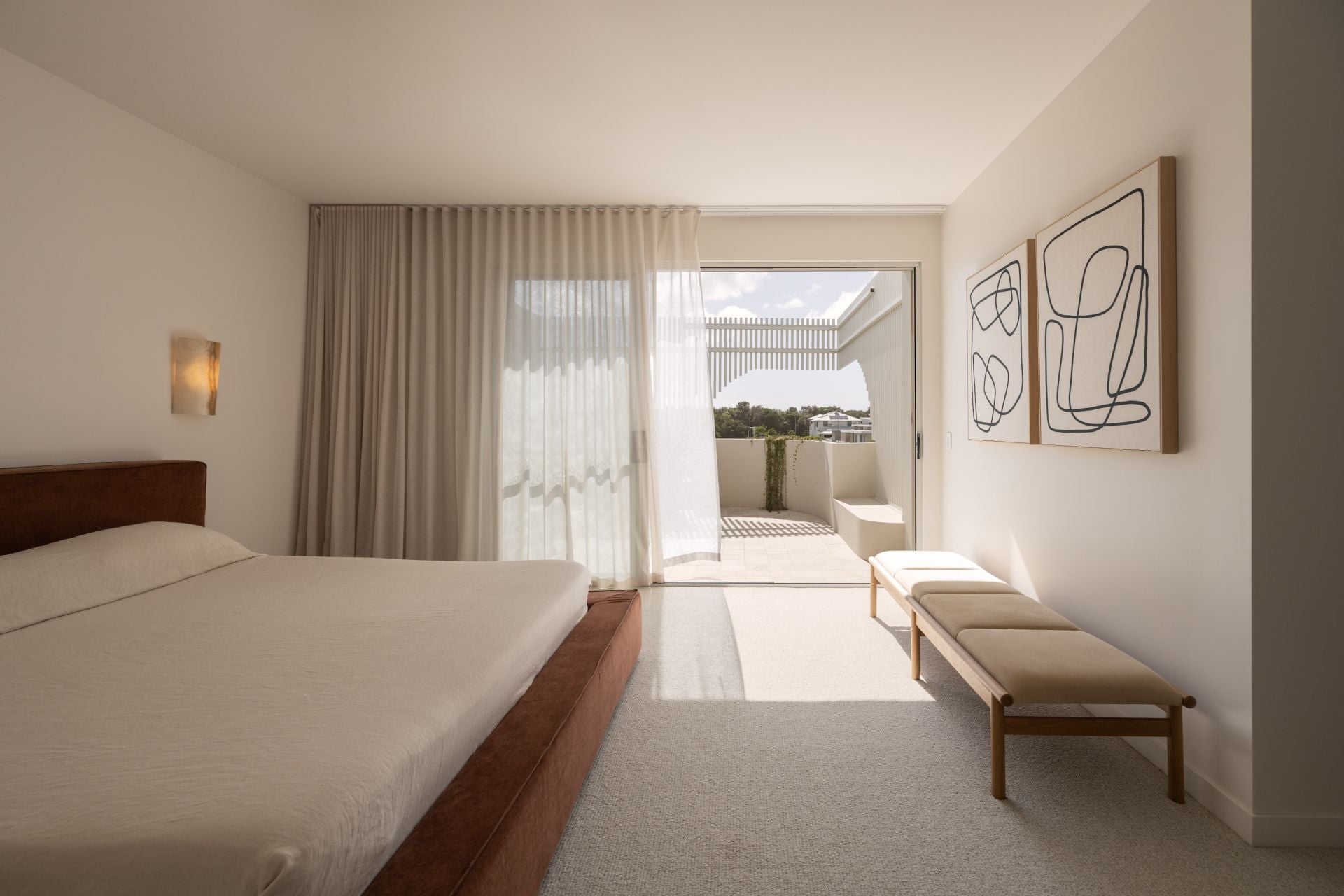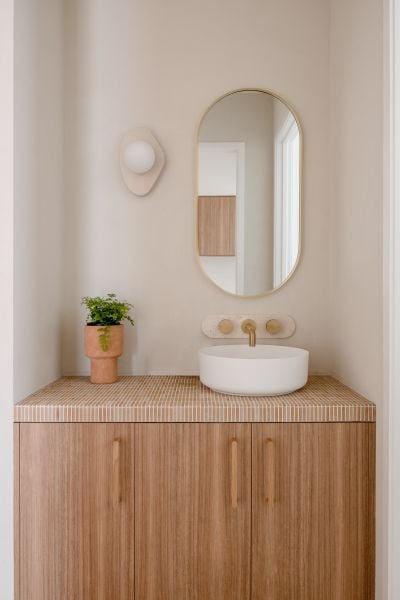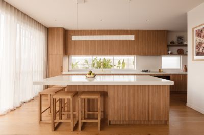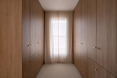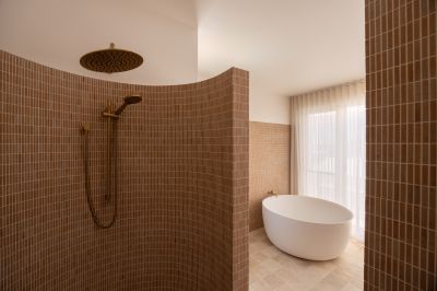 The eastern wing is reserved for a refined master retreat, positioned to capture morning light and cooling sea breezes. A true walk-in wardrobe and finely detailed ensuite - defined by curved forms, handmade tiles and tactile finishes - create a space that feels calm, indulgent and deeply considered. A private balcony extends the retreat outdoors, offering a quiet place to start or finish the day.