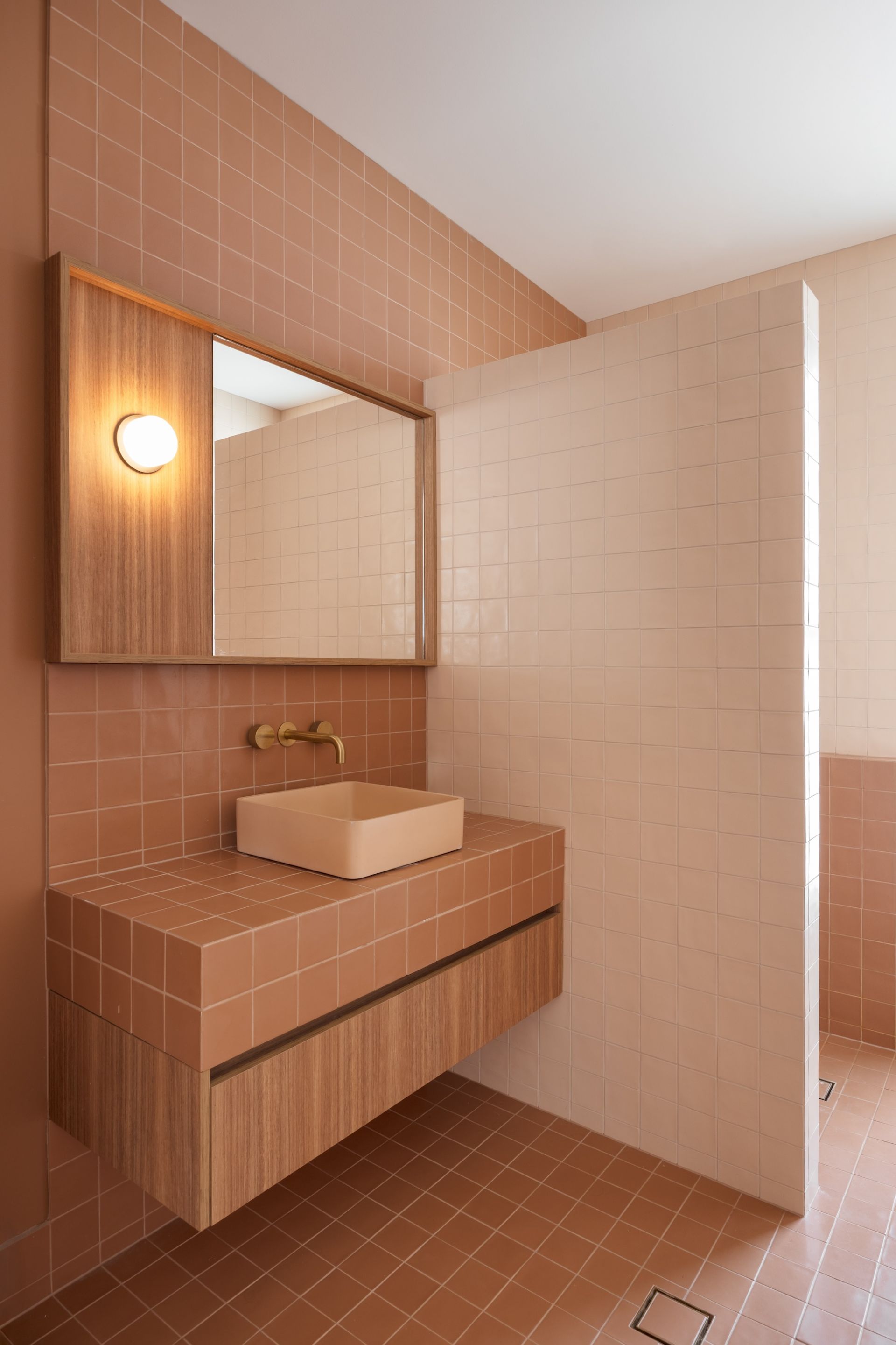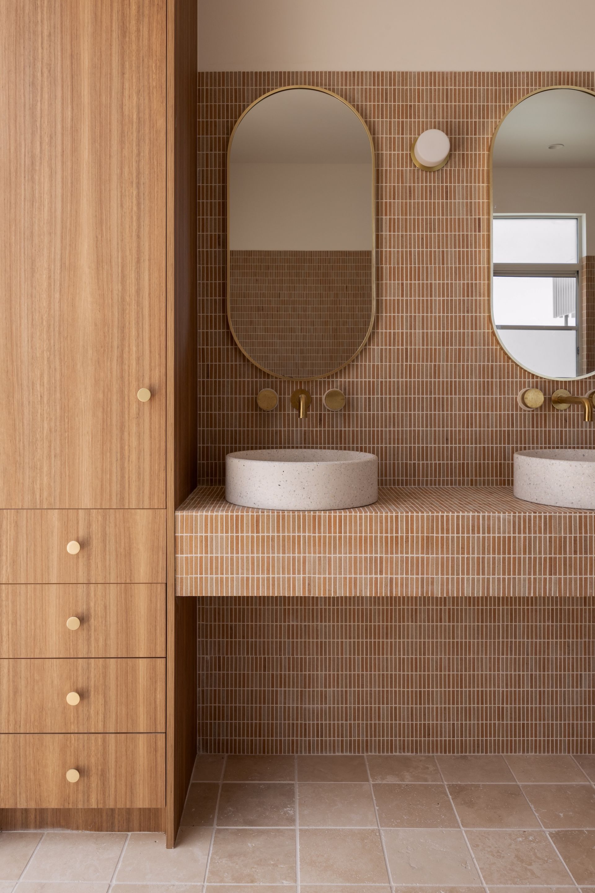 Set on a sun-drenched corner parcel within Casuarina's final land release, the home distinguishes itself through clarity and confidence rather than scale. The entire lower level is wrapped in handmade terracotta tiles by Jatana - each piece irregular, individually laid, and rich with natural variation. The effect is warm, tactile and enduring; a material choice that speaks to patience, craft and intent. This same terracotta continues through the entry, establishing a quiet sense of continuity and arrival.