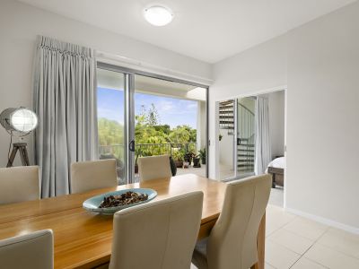 The open-plan kitchen, living, and dining areas flow seamlessly onto the large balcony, perfect for long lunches with friends, overlooking the resort pools and leafy surroundings. Upstairs, the rooftop terrace offers expansive ocean views and hinterland vistas. Morning coffees and sunset drinks have never been better.
