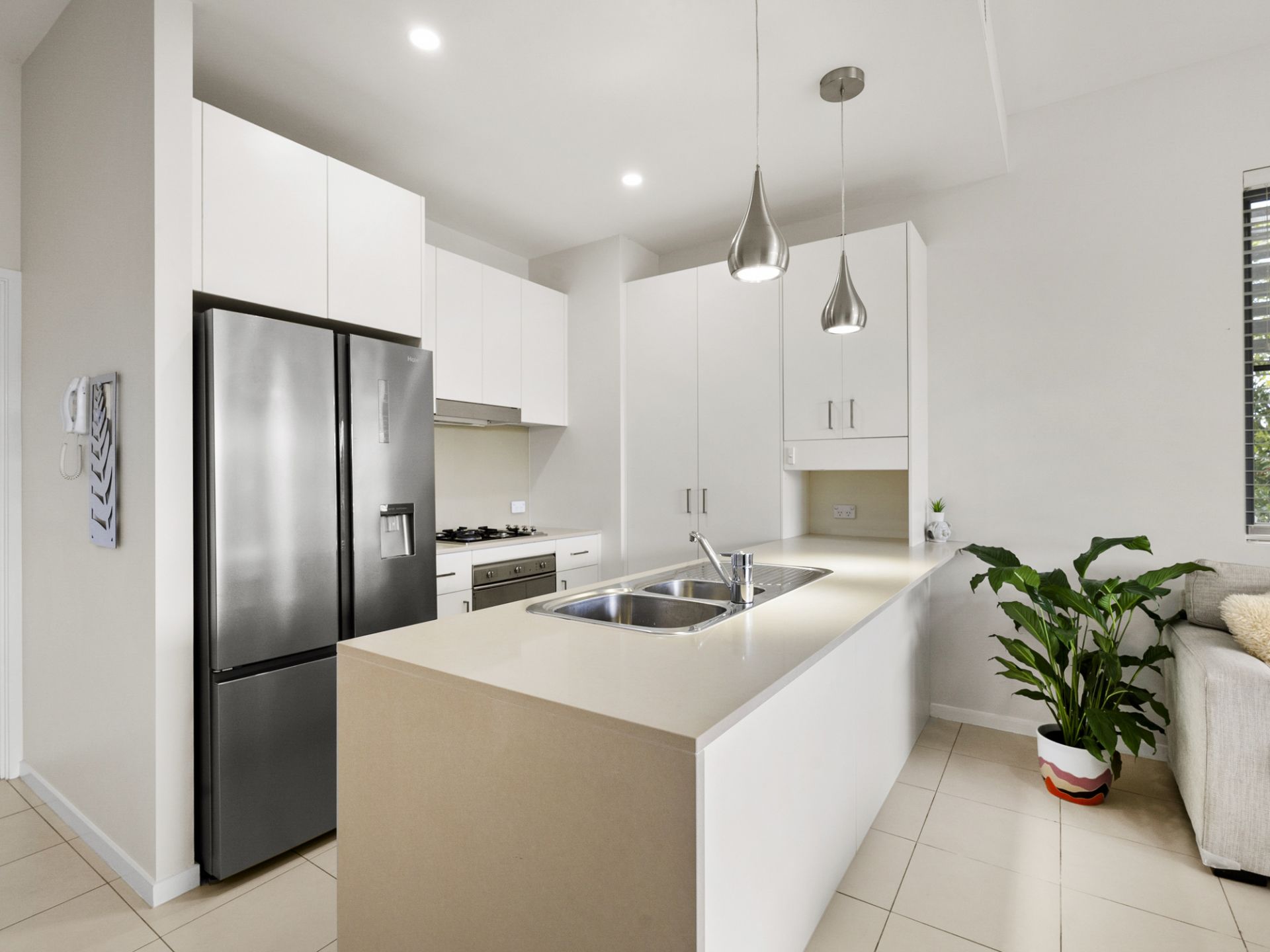 - Spacious open-plan kitchen with gas cooking and stone benchtops