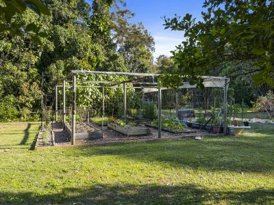 Beyond the house, the vast grounds invite endless hours of enjoyment, equipped with a designated fire-pit area, a thriving veggie garden, and an adventure playground with swings, flying fox, and sandpit for the kids. Plus, the large garage/shed perfectly accommodates all your storage needs.