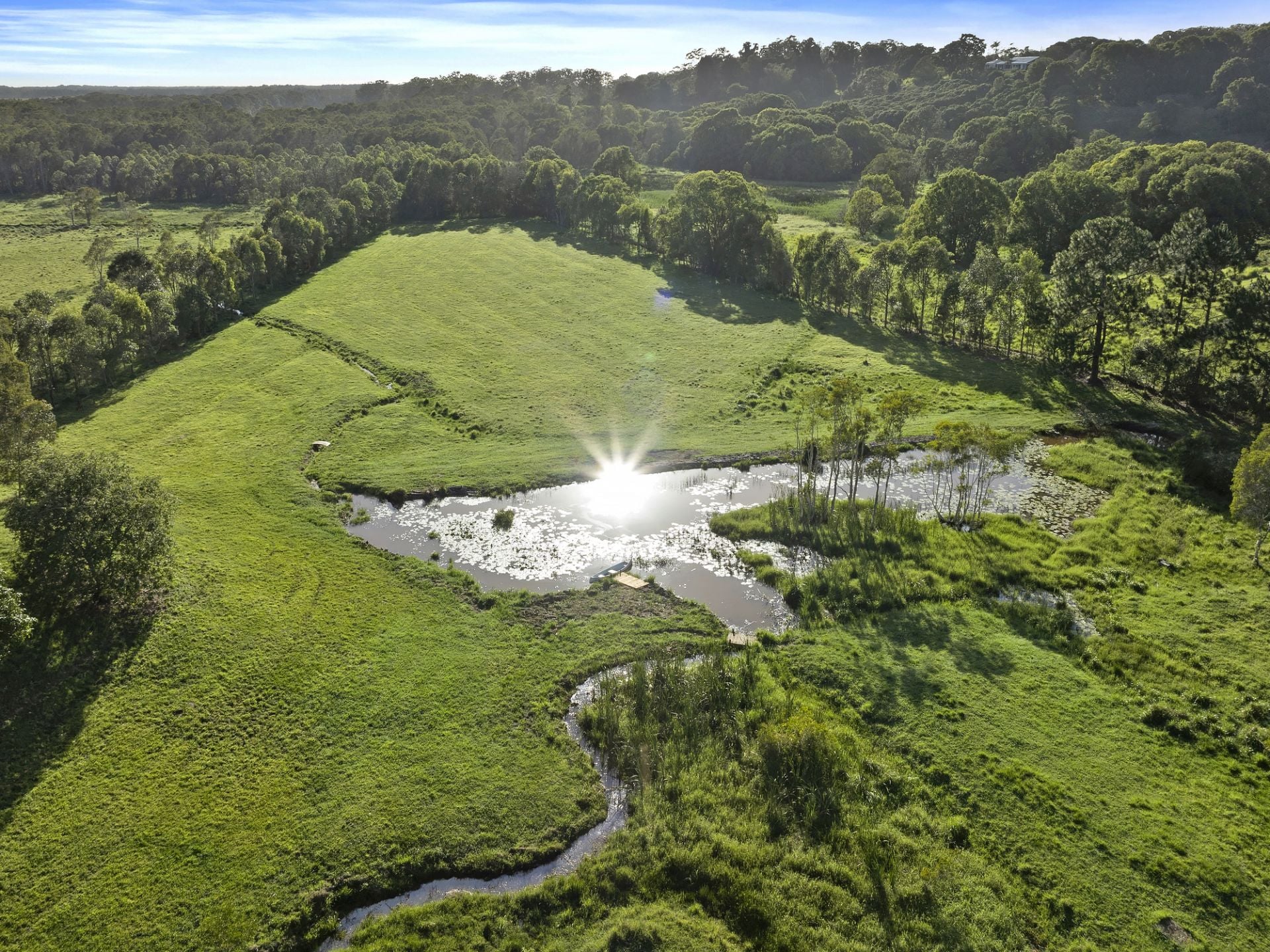 - Large spring-fed dam, creeks and wetland area