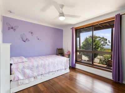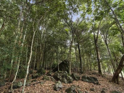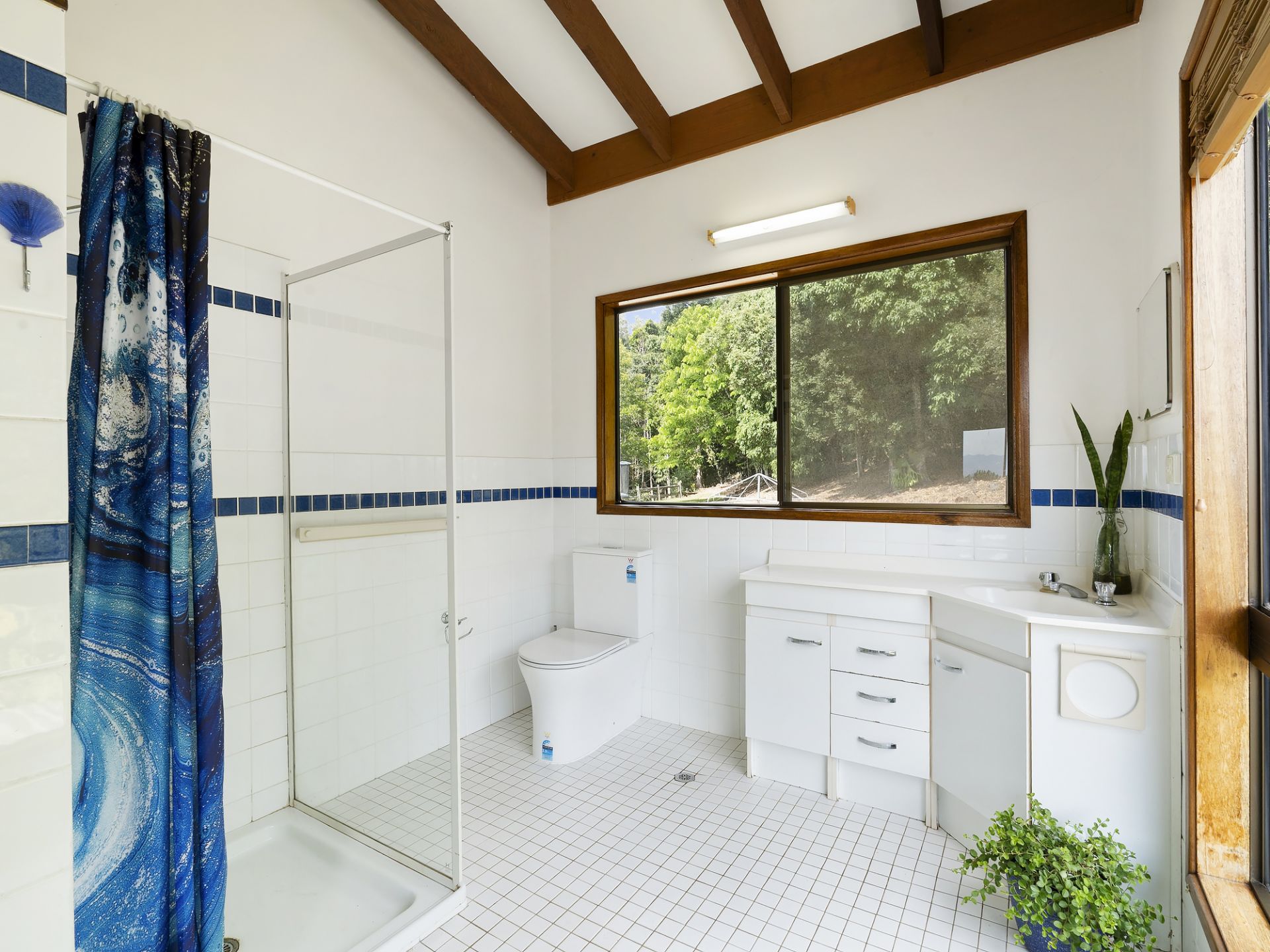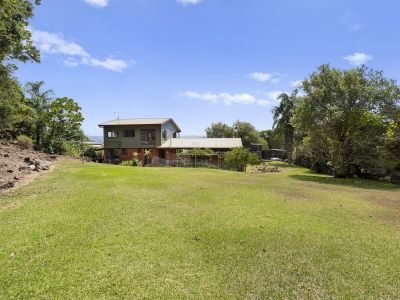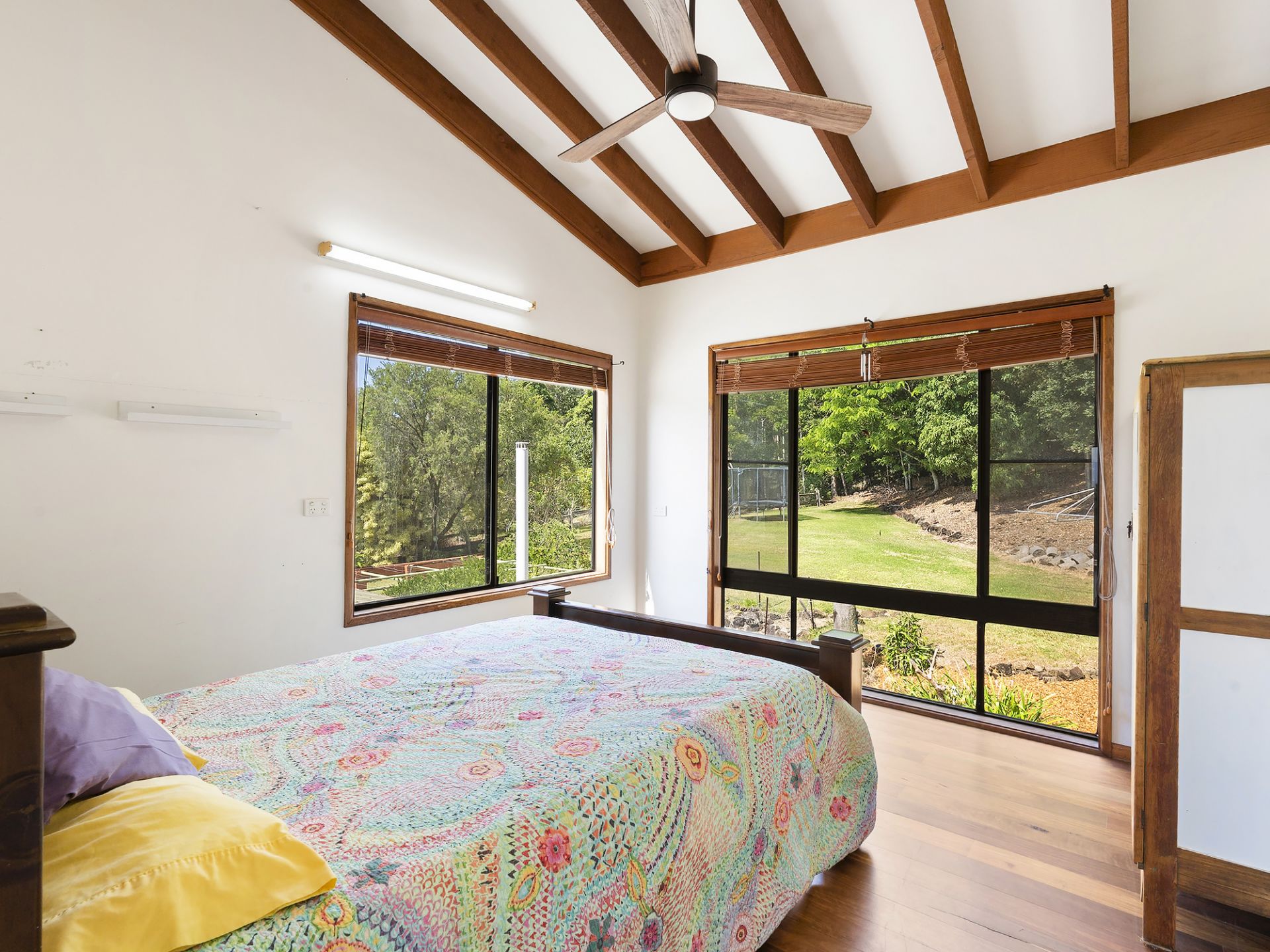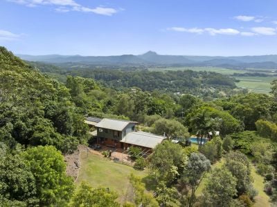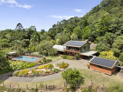 The land is beautifully balanced, with open, cleared grounds surrounding the home and the rear of the property unfolding into native bushland and rainforest, scattered with dramatic volcanic boulders. Wildlife and birdlife are abundant, and there's a real sense of privacy and natural beauty throughout.