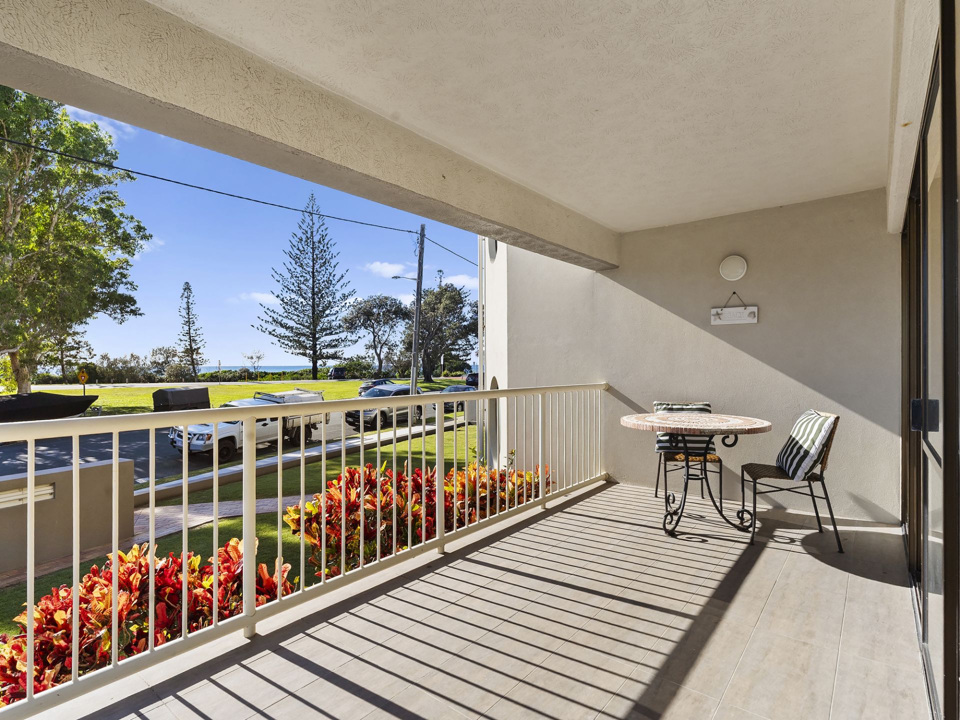 Both bedrooms are well-proportioned and feature built-in robes, while the master enjoys the privacy of its own ensuite and rear balcony. The main bathroom includes a bath for post-beach relaxation, and a large separate laundry adds everyday convenience.