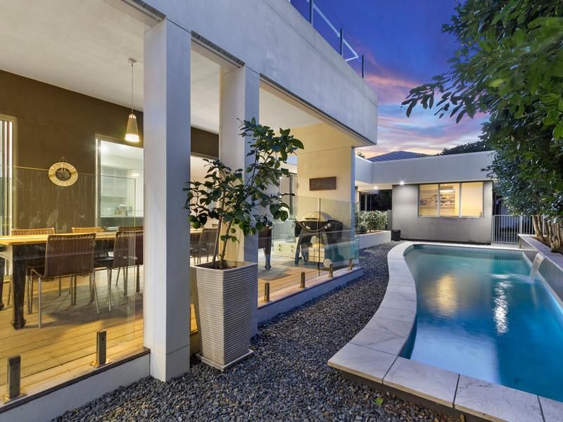 Local architect Scott Carpenter designed this home with strong, clean lines, and it has been built to high standards with a concrete sub slab on the second floor, high ceilings encouraging air flow and light, superb outdoor areas both upstairs and down.