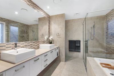 A spacious and well designed kitchen is flanked with a large laundry that works beautifully as a butlers pantry too. The open plan living and dining area connects to the covered outdoor entertaining area as well as a secondary elegant living and dining room with dramatic ceiling heights.