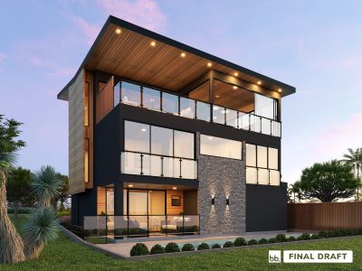 The approved plans include four bedrooms, with a luxurious master suite featuring a walk-in robe and ensuite. An expansive open-plan kitchen, living and dining area occupies the entire top floor, flowing to a large entertaining deck where panoramic ocean views set the backdrop for coastal living.