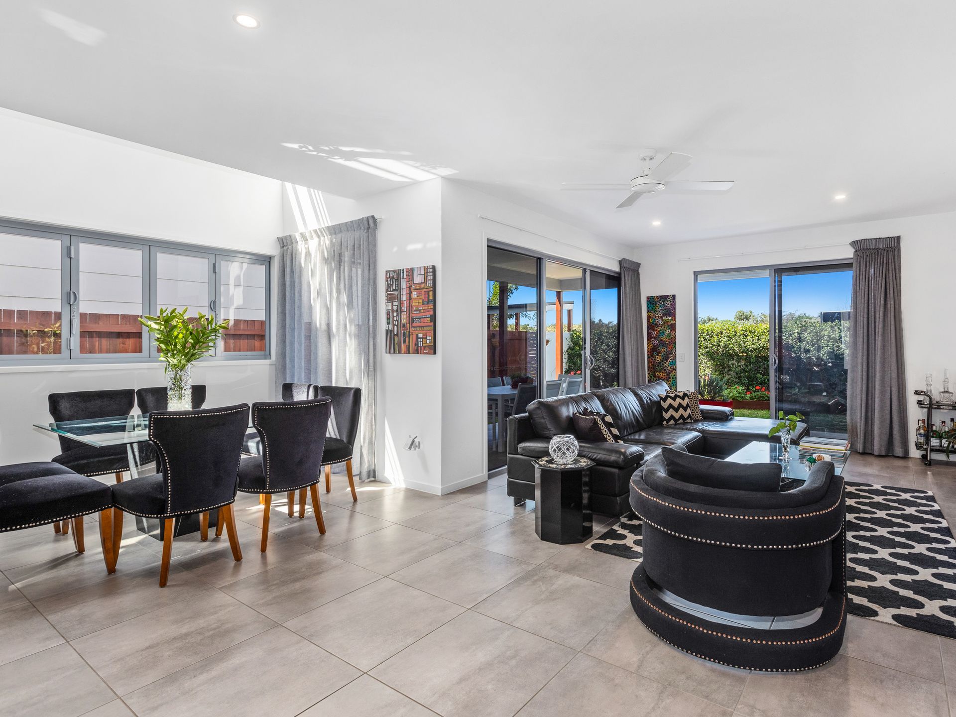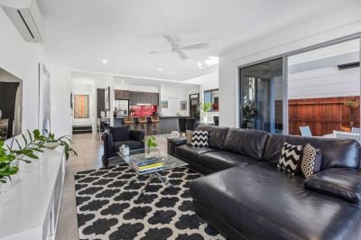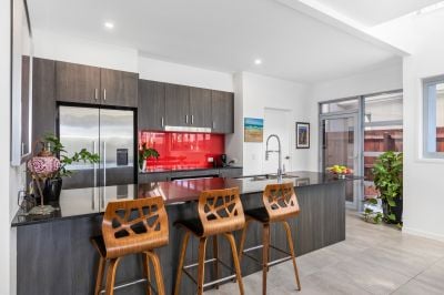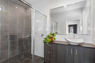 This is quite the entertainer with an outdoor, undercover built in BBQ with sink and spacious, neatly landscaped garden to spread out in with family and friends. The open plan living, dining and kitchen are inviting and airy with vaulted ceiling over the dining and additional powder room for guests.