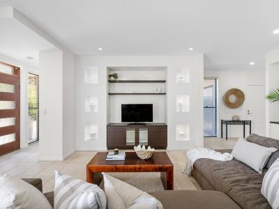 - Light-filled living and dining area enhanced with a built-in study nook