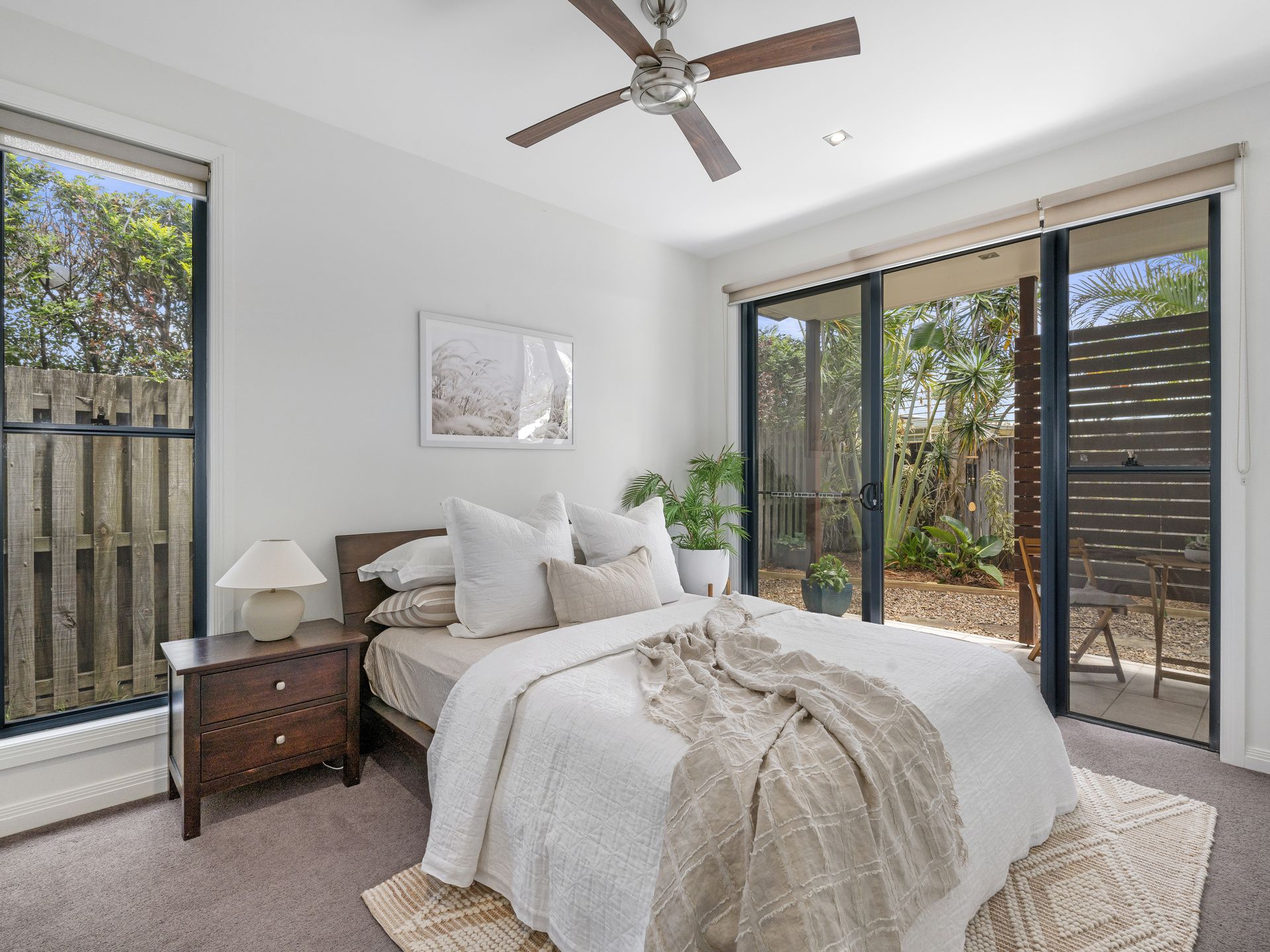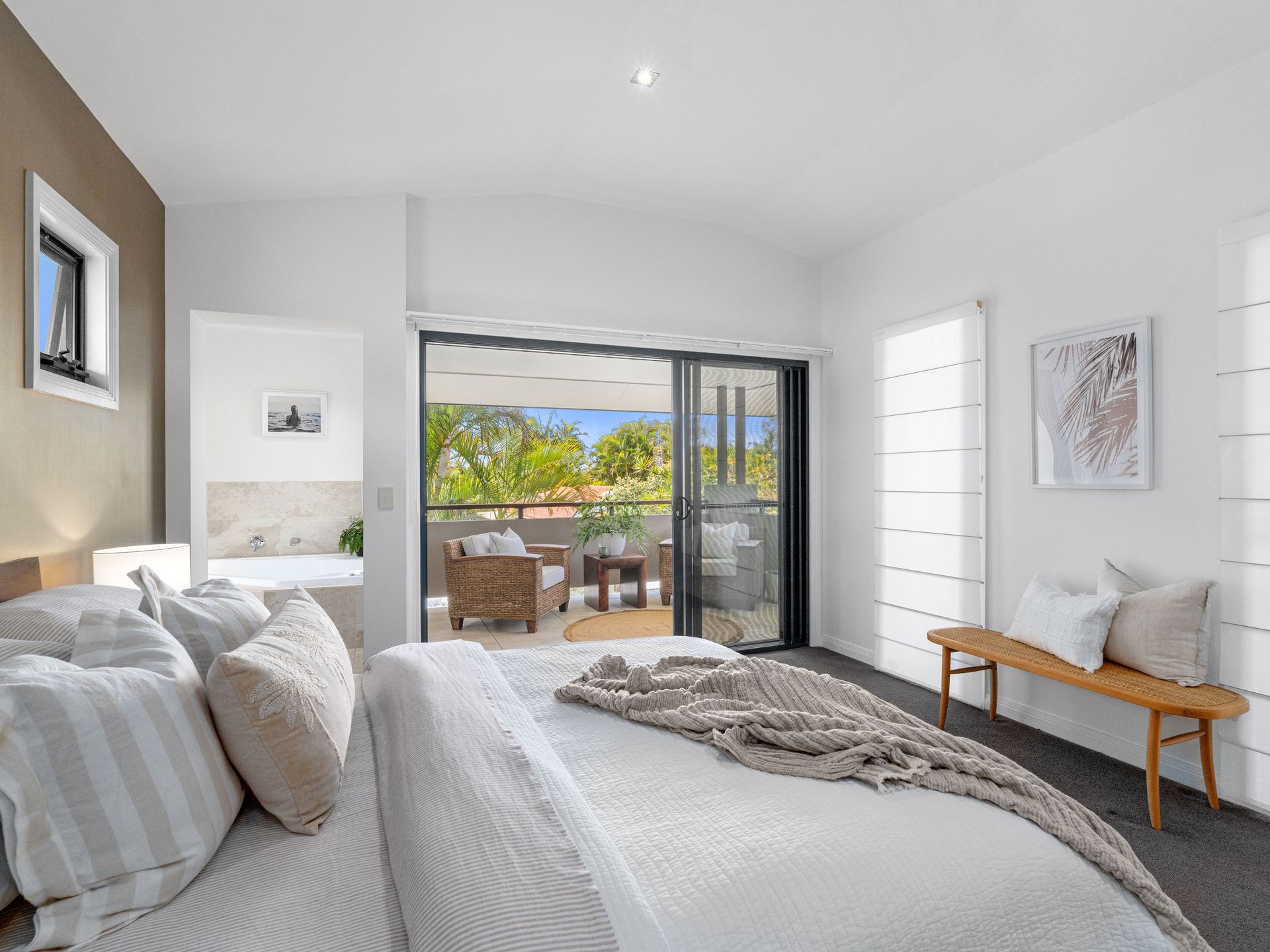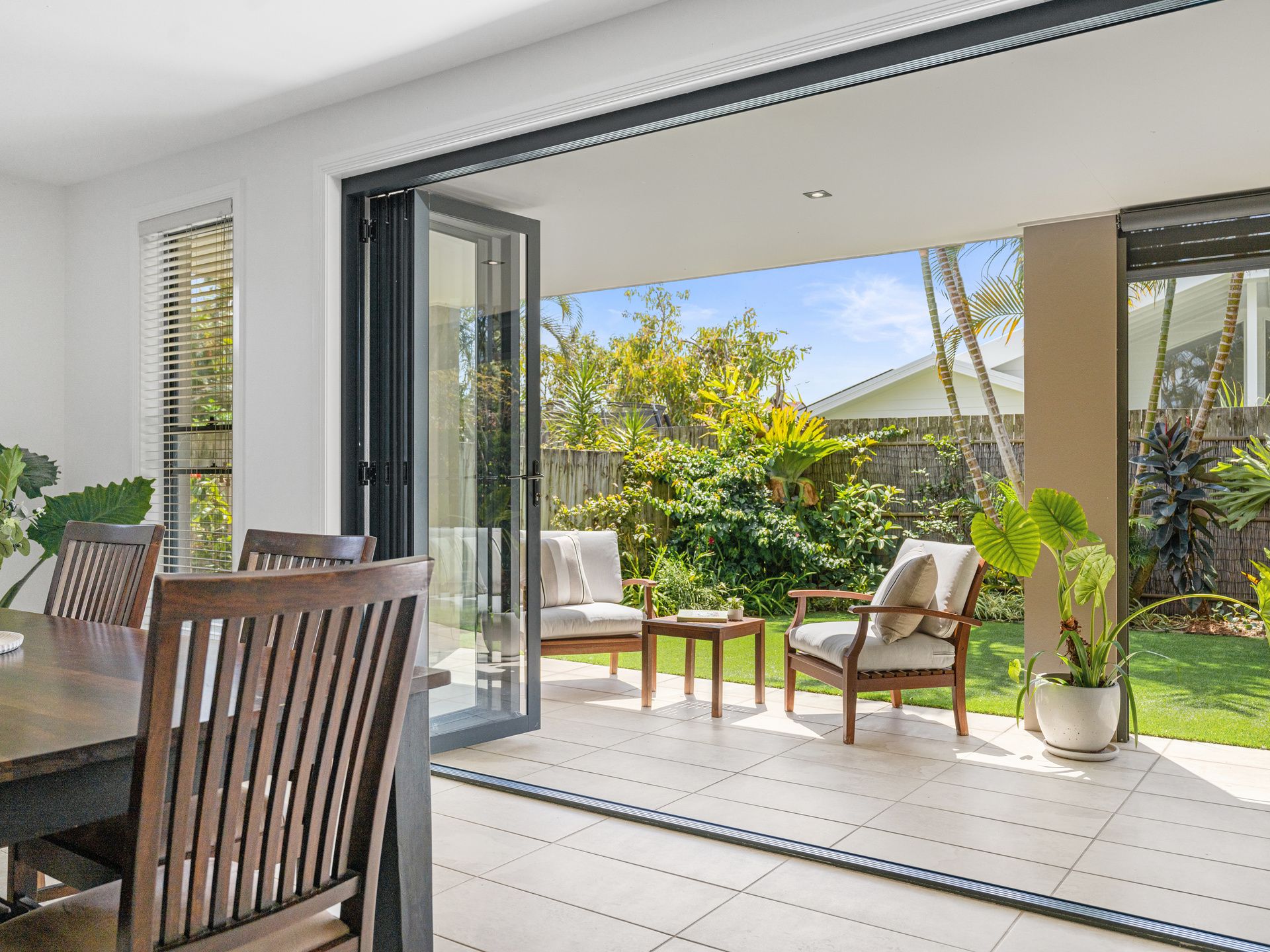 Entertaining is easy, thanks to a covered alfresco terrace, plus a weather protection blind ensures you're able to enjoy this enticing outdoor space year-round. Settle in with an evening drink while listening to the soothing soundtrack of the ocean or enjoy hosting guests against a backdrop of tropical gardens. And, with established greenery and quality artificial grass in place, weekends are reserved for coastal adventures, not chores.