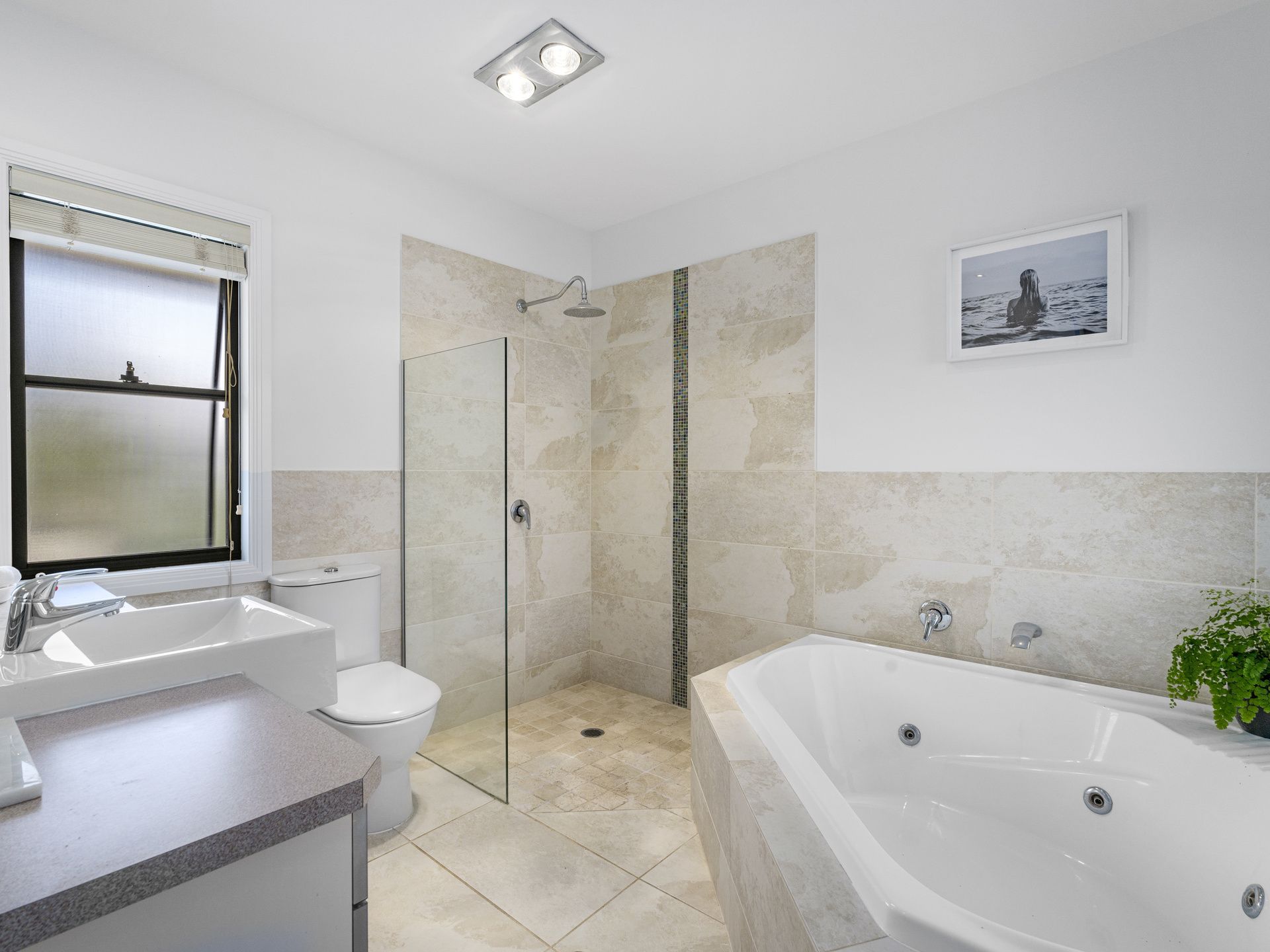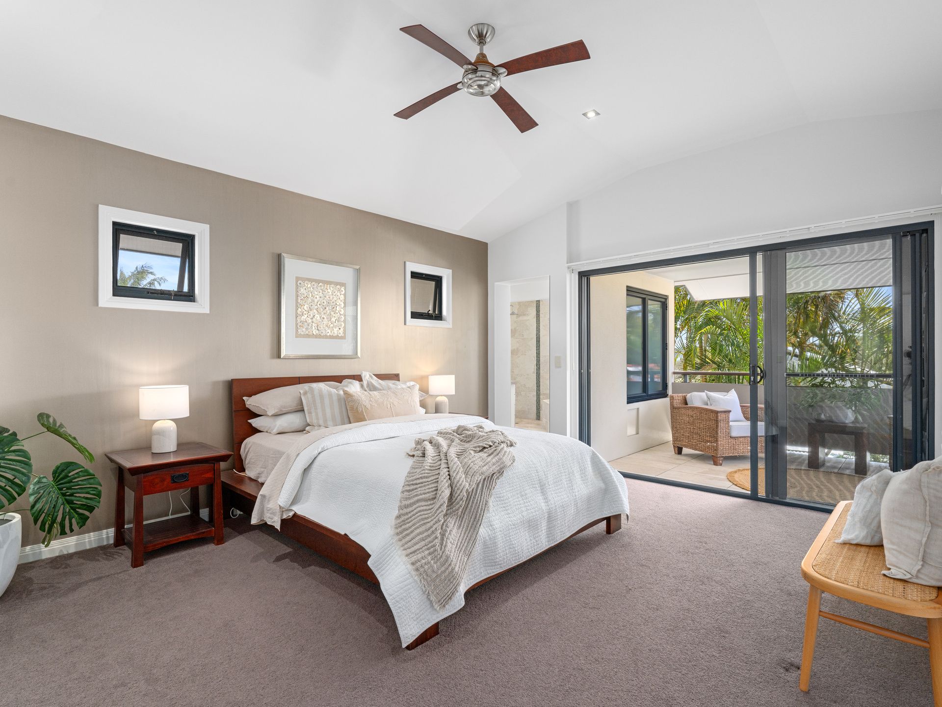 - Sophisticated master suite with high-set vaulted ceiling, light-filled spa ensuite and walk-in robe