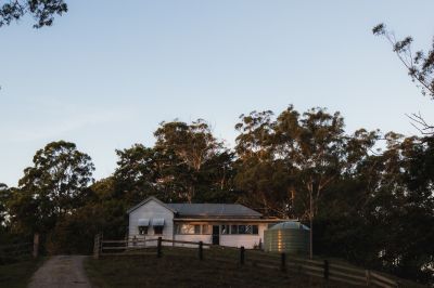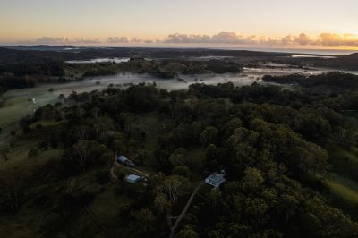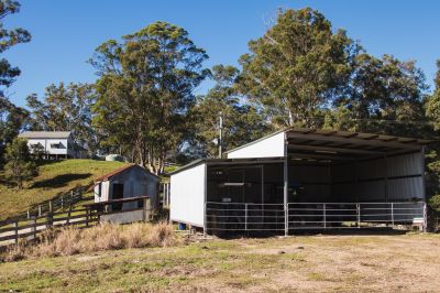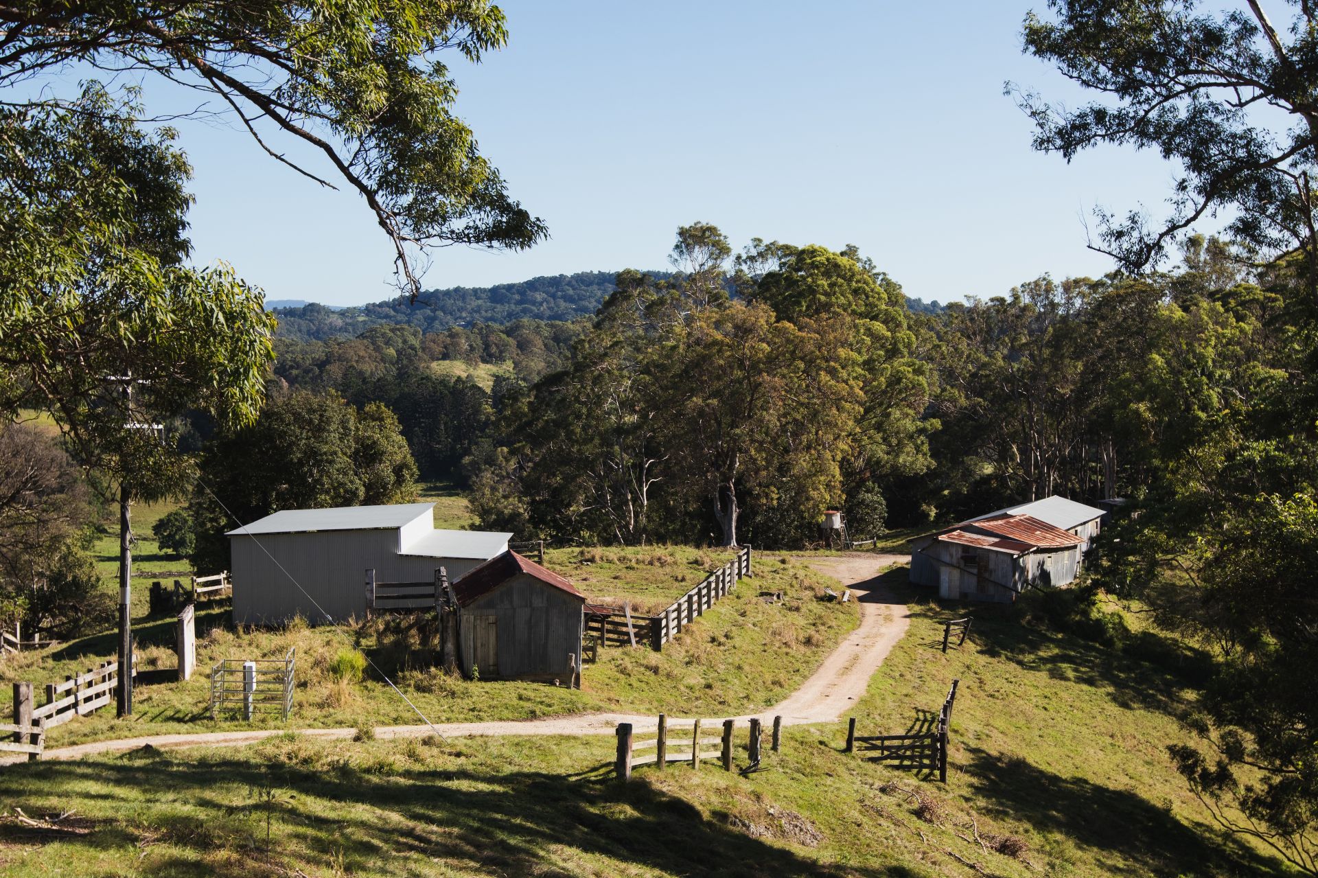 At the southern ridgeline, the original five-bedroom farmhouse gazes east through towering eucalypts to the ocean beyond – a character-rich home ready for renovation or replacement. Surrounding it are a collection of charming older sheds and practical newer structures, offering flexibility for farming or storage needs.