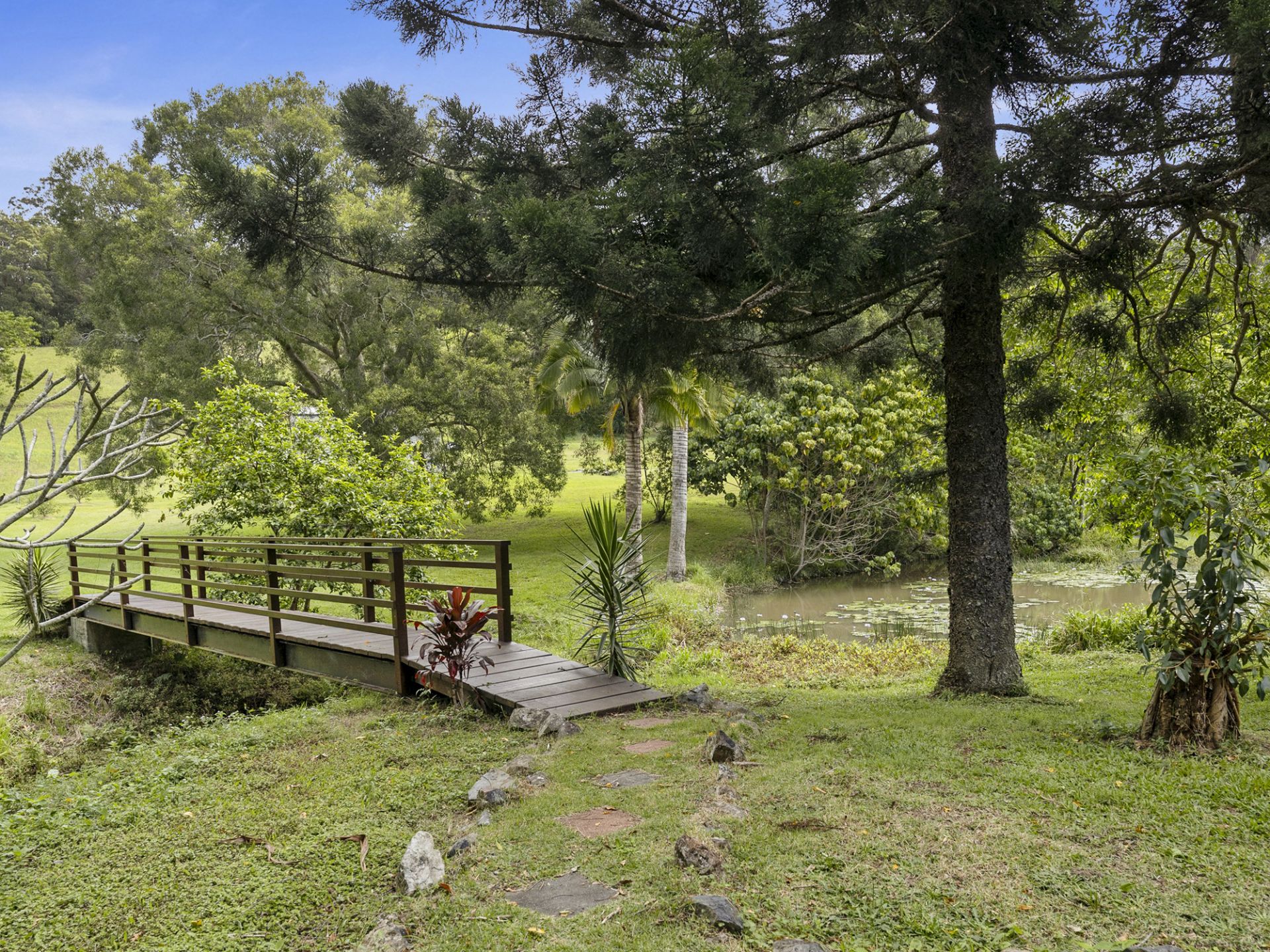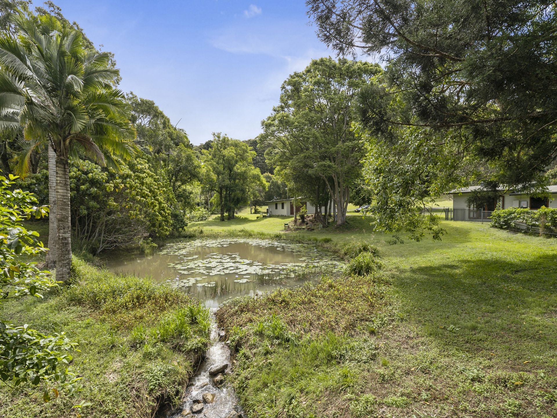This picturesque terrain is ideal for an orchard, food forest or equestrian. With existing fruit-bearing species including citrus, mango, fig, and various exotics. Two creeks meander through the property, ensuring ample water supply alongside the two dams. Home to abundant native birdlife and wildlife, this remarkable property invites endless possibilities for enhancements and additions. A comprehensive permaculture study is available for viewing on-site (hard copy only).