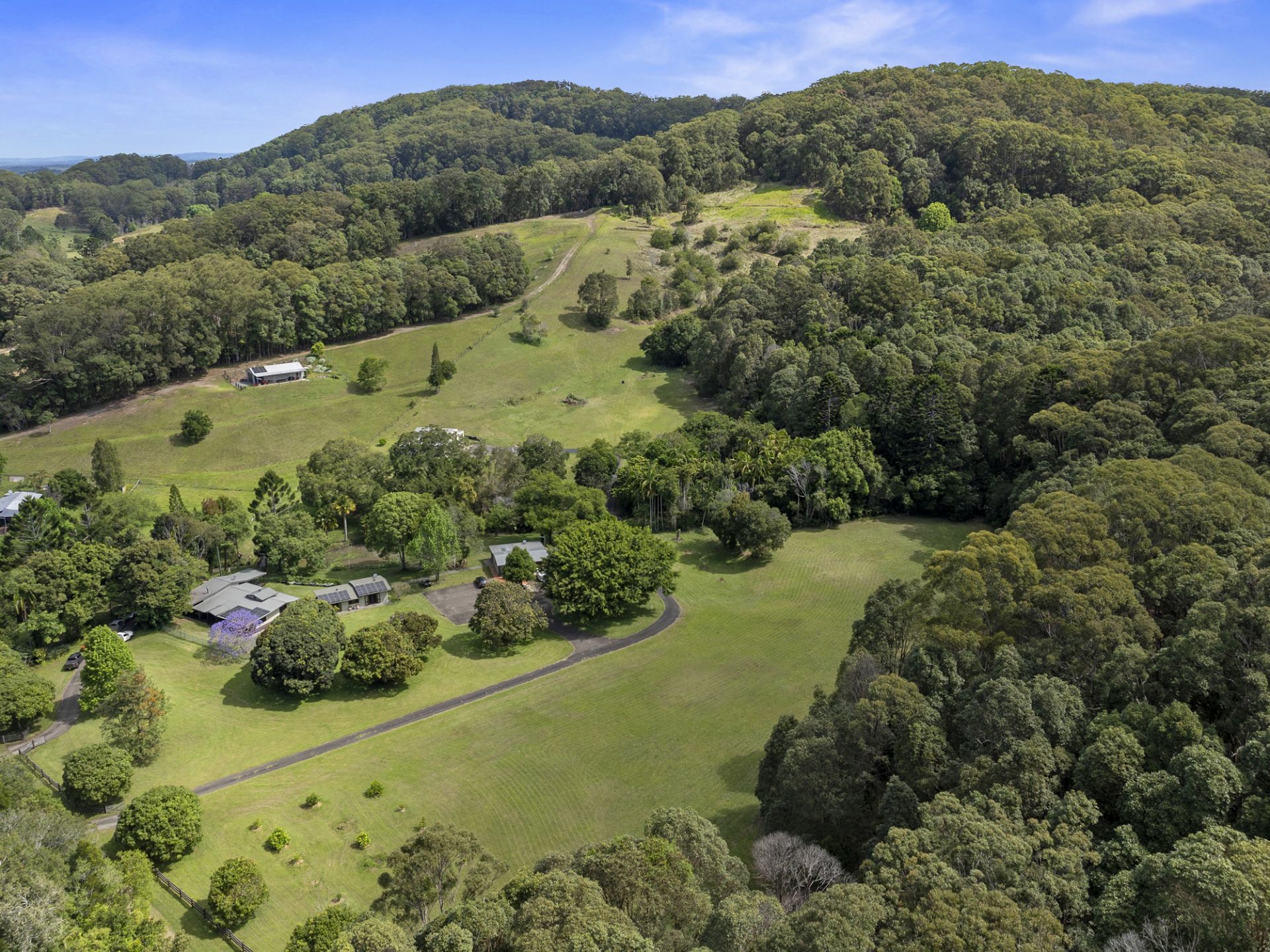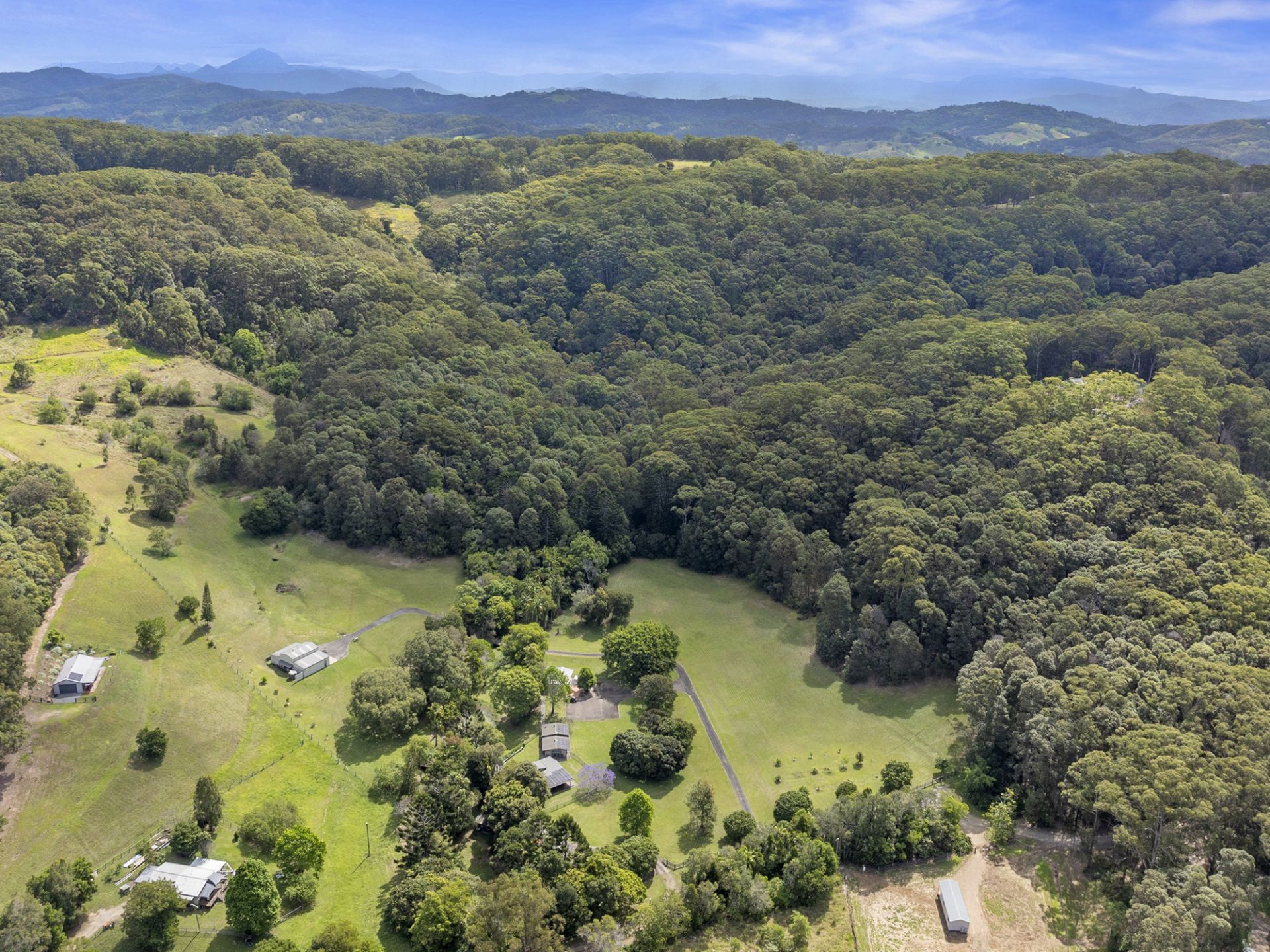 Imagine flowing creeks, lush rainforest tracks, and sprawling open spaces. With multiple accommodation options, a charming barn, winding roads, serene dams, and an established orchard, the list of amenities is truly impressive. For the visionary, there is one of the best house sites we've come across with a gunshot view down the valley overlooking Cabarita Beach.